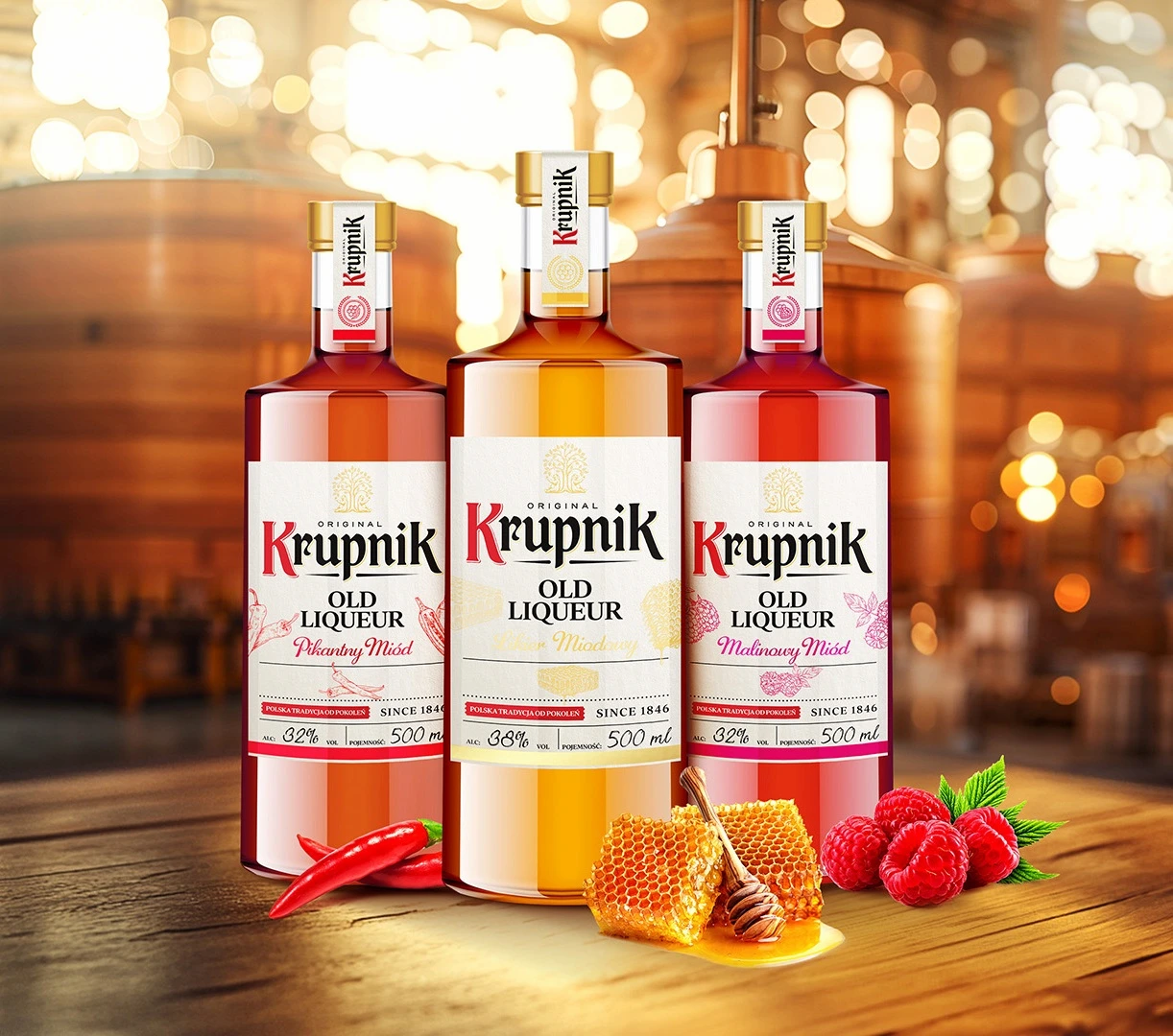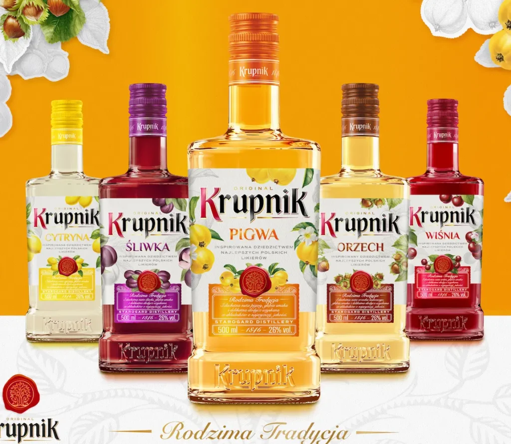 Likiery Krupnik, inspirowane dziedzictwem najlepszych polskich likierów, bazują na oryginalnych recepturach z dużą ilością naturalnego soku. Nasze likiery to rodzima tradycja, szlachetna nuta owoców, głębia smaku i delikatna słodycz uzyskana ze składników o najwyższej jakości.