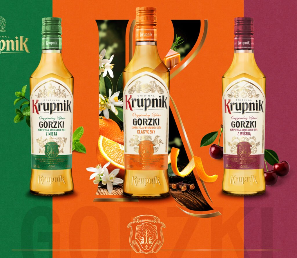 Krupnik Gorzki to starannie wyselekcjonowana kompozycja ziół i maceratu z gorzkiej pomarańczy w trzech odsłonach – z dodatkiem karmelu, mięty bądź wiśni.